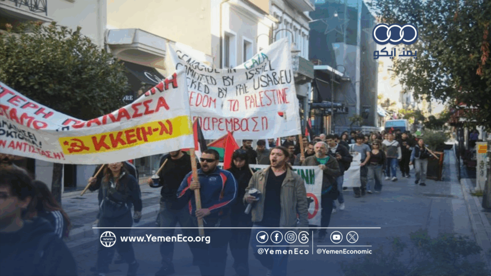 تظاهر متضامنون مع فلسطين، الأربعاء، في ميناء باترا اليوناني، احتجاجاً على سفينة تقل سياحاً إسرائيليين كانت من المقرر أن ترسو في الميناء، قبل أن تغير مسارها نحو ميناء آخر، وفقاً لما نشرته وكالة الأناضول، ورصده موقع “يمن إيكو”.