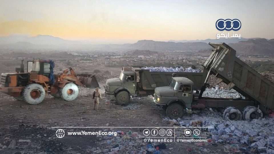 نفّذ مكتب الاقتصاد والصناعة والاستثمار في أمانة العاصمة صنعاء، عملية إتلاف واسعة لكميات كبيرة من المواد الغذائية الفاسدة والمنتهية الصلاحية، بلغت 126.1 طن، بعد التأكد من عدم صلاحيتها للاستهلاك الآدمي، وفق ما نشرته وكالة (سبأ) التابعة لحكومة صنعاء، ورصده “يمن إيكو”.
