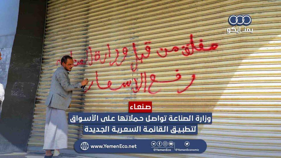 أغلقت وزارة الصناعة والتجارة بحكومة صنعاء، اليوم الإثنين، عدداً من المحلات التجارية ومنافذ البيع في أمانة العاصمة، وذلك لمخالفتها قائمة السقوف العليا لأسعار السلع الغذائية التي أعلنتها أواخر الشهر المنصرم.