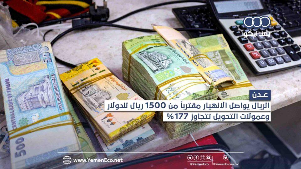 ورافق ذلك الانهيار ارتفاع كبير في عمولة الحوالات المالية من عدن إلى المحافظات الشمالية، حيث أوضحت المصادر أن عمولة التحويل وصلت إلى 177%، وهو ما يقارب ضعف المبلغ المحوَّل.