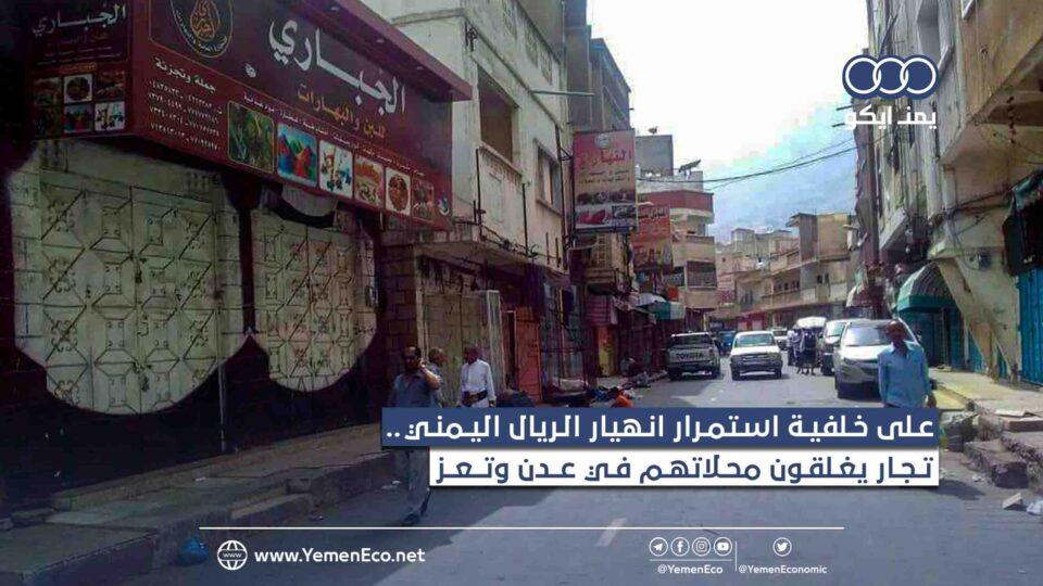 ووفق مصادر محلية فإن محلات تجارية في عدن وتعز أغلقت أبوابها، جراء الارتفاع غير المسبوق في سعر صرف الدولار والريال السعودي، لتجنب المزيد من الخسائر التي تسبب بها- وما يزال- هذا الارتفاع.