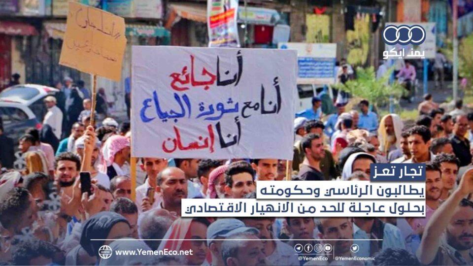 حذر تكتل تجار تعز المجلس الرئاسي وحكومته من ثورة جياع في المحافظة، على خلفية استمرار انهيار العملة المحلية أمام العملات الأجنبية وارتفاع أسعار السلع والخدمات، وانحسار القدرة الشرائية للمواطنين.
