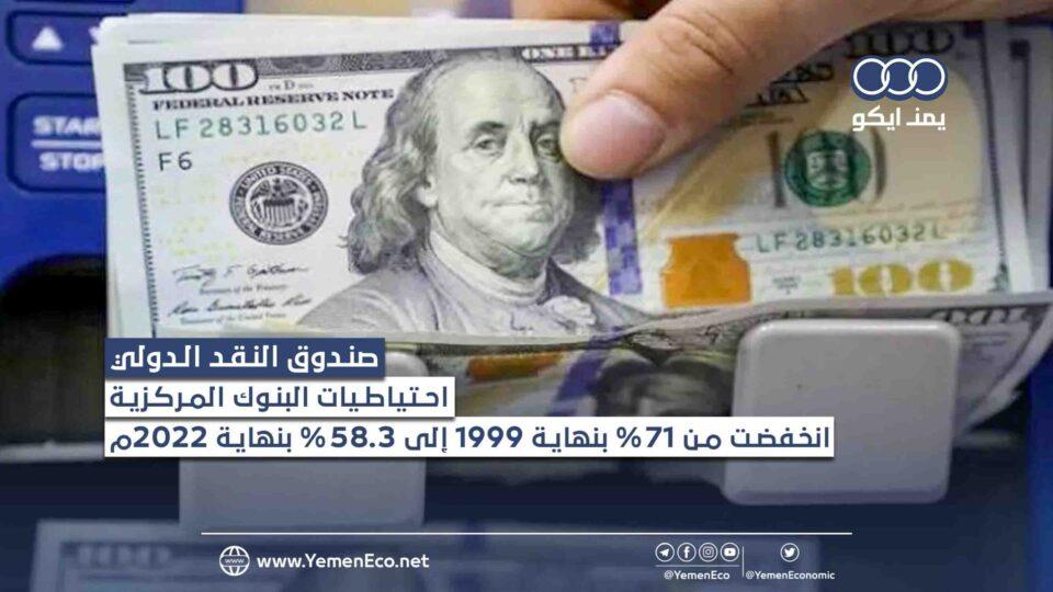 وأكدت بيانات صندوق النقد الدولي، سقوط الاحتياطيات الدولارية لدى البنوك المركزية من 71% بنهاية عام 1999 إلى 58.3% في نهاية 2022م.