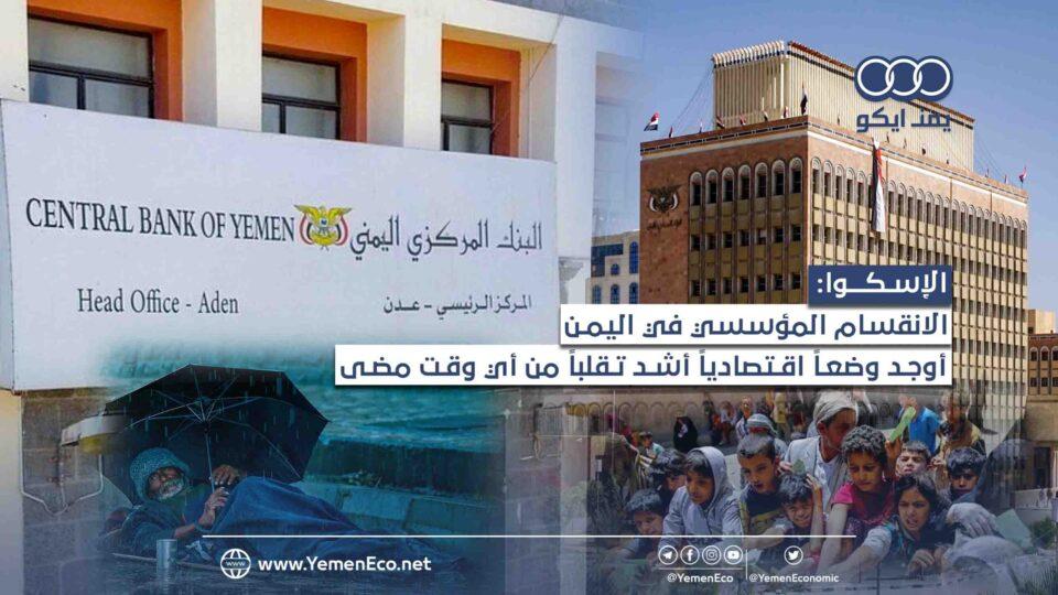 وأوضح التقرير أن هذا الانقسام في المؤسسات العامة، وعلى وجه الخصوص في المؤسسات المعنية بوضع السياسة الاقتصادية، أوجد اقتصادين منفصلين ووضعاً اقتصادياً أشد تقلباً من أي وقت مضى، وتبعاً لذلك انتشر الفقر وتفاقم انعدام الأمن الغذائي على نطاق غير مسبوق.