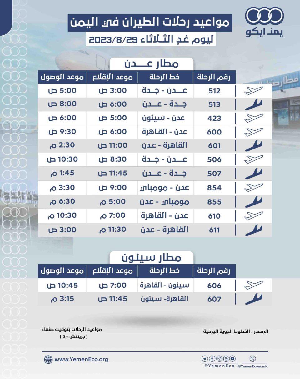 مواعيد الرحلات: الثلاثاء 29 أغسطس 2023م