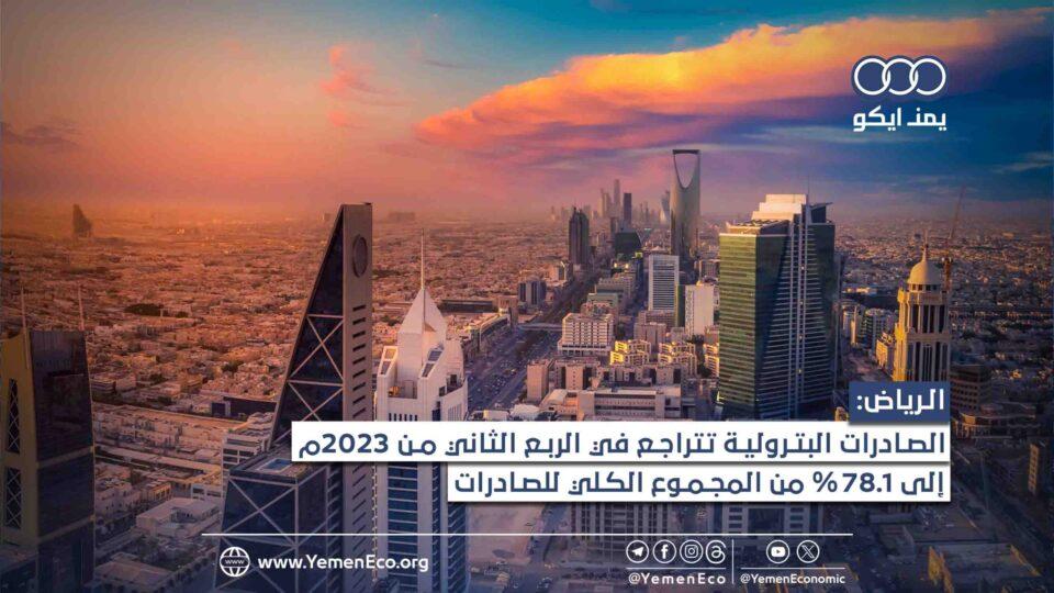 وفقدت الصادرات البترولية في الربع الثاني من العام الجاري 227.7 مليار ريال من أصل 341.6 مليار ريال، حققته في الربع نفسه من عام 2022م، وانخفضت نسبة الصادرات البترولية من المجموع الكلي لصادرات البلاد إلى 78.1% في الربع الثاني عام 2023، من أصل 79.9% في الربع نفسه من العام الماضي.