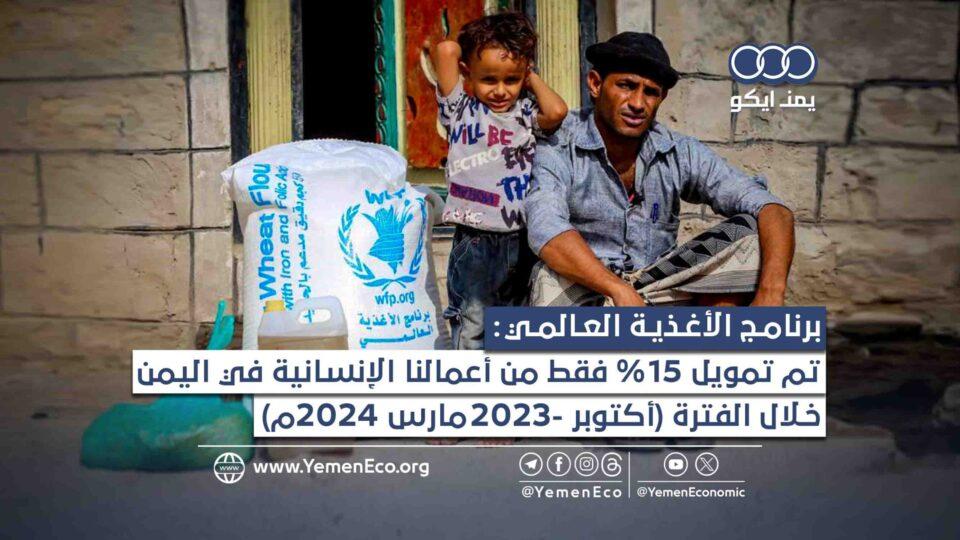 وقال التقرير إن برنامج الأغذية العالمي في اليمن “لا يزال يواجه نقصًا حادًا في التمويل، حيث تم تمويل عملية الاستجابة بنسبة 15% فقط لفترة الستة أشهر من أكتوبر 2023 إلى مارس 2024”.