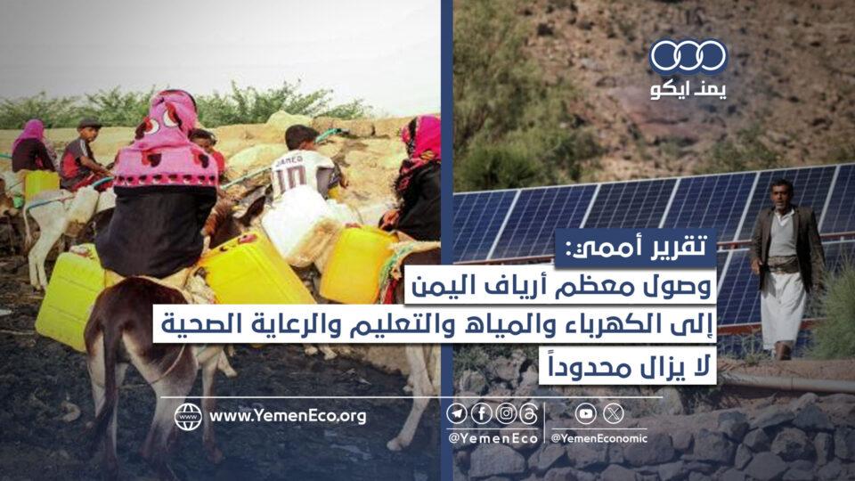 وأشار التقرير إلى أن وصول معظم المناطق الريفية في اليمن إلى الكهرباء والمياه والتعليم والرعاية الصحية لا يزال محدوداً، متوقعاً أن يستفيد منه حوالي 850 ألف شخص.
