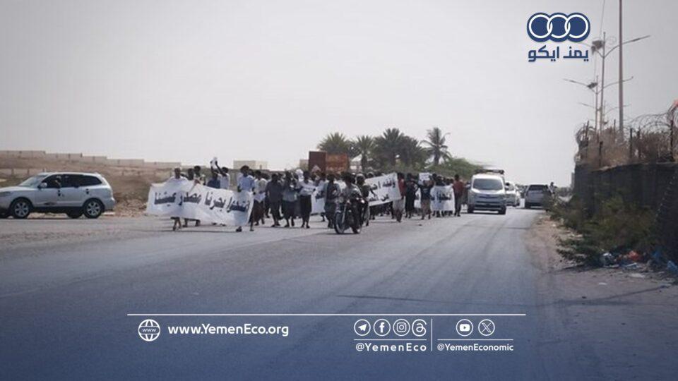 وحسب موقع “الحرف 28″، نفذ الصيادون مسيرةً راجلة من مدينة “شحير” الساحلية، إلى أمام بوابة مطار الريان، في مدينة المكلا عاصمة حضرموت، رافعين لافتات تطالب برفع الظلم عنهم والسماح لهم بممارسة مهنة الاصطياد.