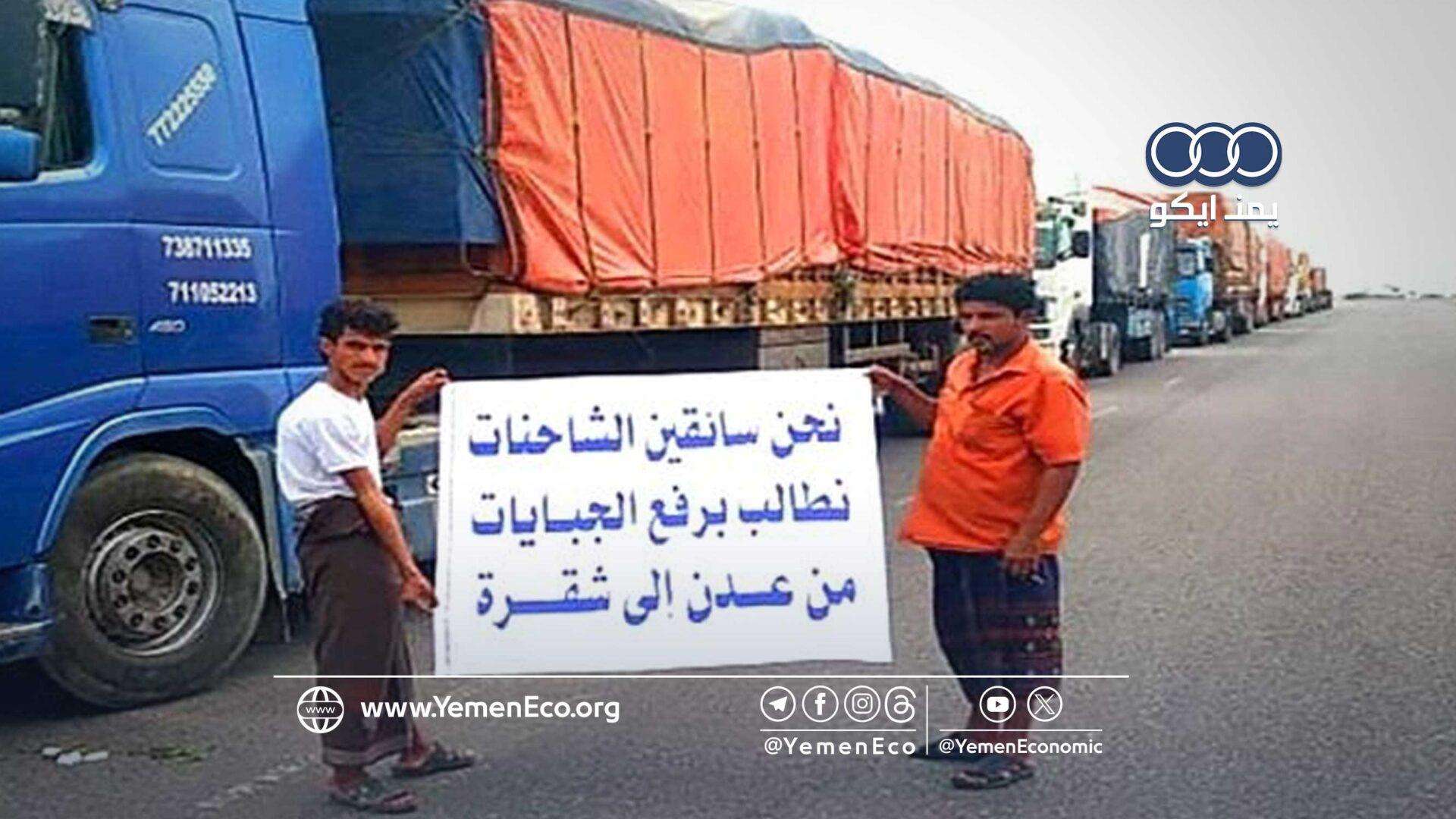 يمن إيكو|أخبار: شكا سائقو الشاحنات العاملة على خط (الضالع – دمت) من قيام نقاط أمنية تابعة للمجلس الانتقالي الجنوبي المدعوم إماراتياً، بفرض جبايات مالية...